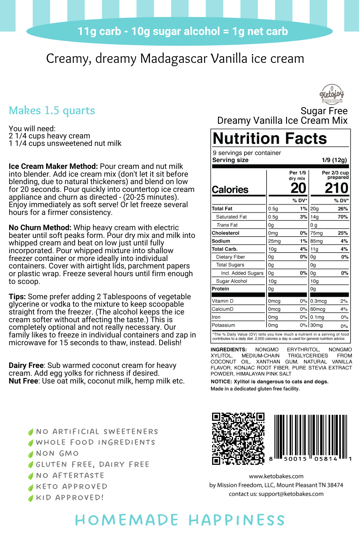 Ice Cream Mix - DREAMY VANILLA -1g net carbs